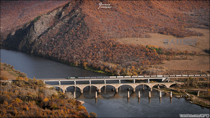 2018年10月6日。绥佳线威岭-晨明区间,HXN5牵引粮食漏斗车在中国粮仓中穿梭。东北铁路是我国半部现代史,图中的汤旺河5号桥历经四代更迭,由远及近分别是日本1938年、日本1940年、新中国1980年和新中国2006年版本。