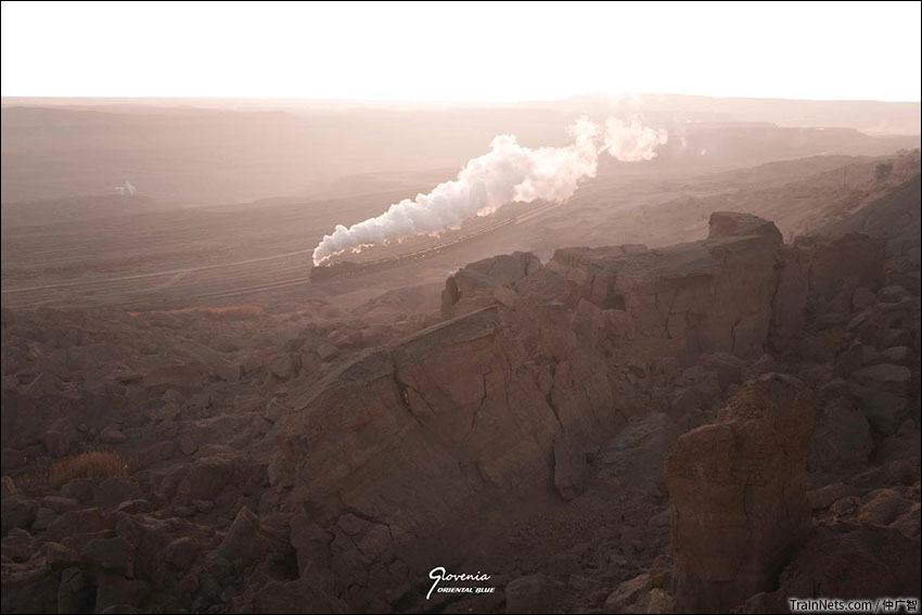 2020年1月11日。新疆三道岭煤矿,蒸汽机车在滑坡带当中穿行。(图/仲广智)