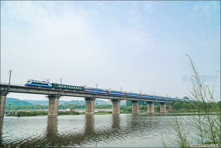 2019年8月。夏末。伊河。韶山八牵引客车T6551次(邓州-郑州)通过,卷起一丝波澜。(图/尘亦清)