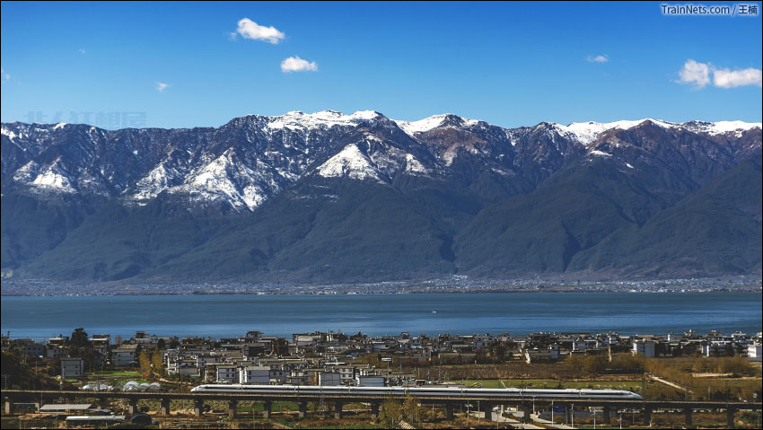 2020年2月。CRH2G型动车组行驶在大理苍山洱海。(图/王楠)