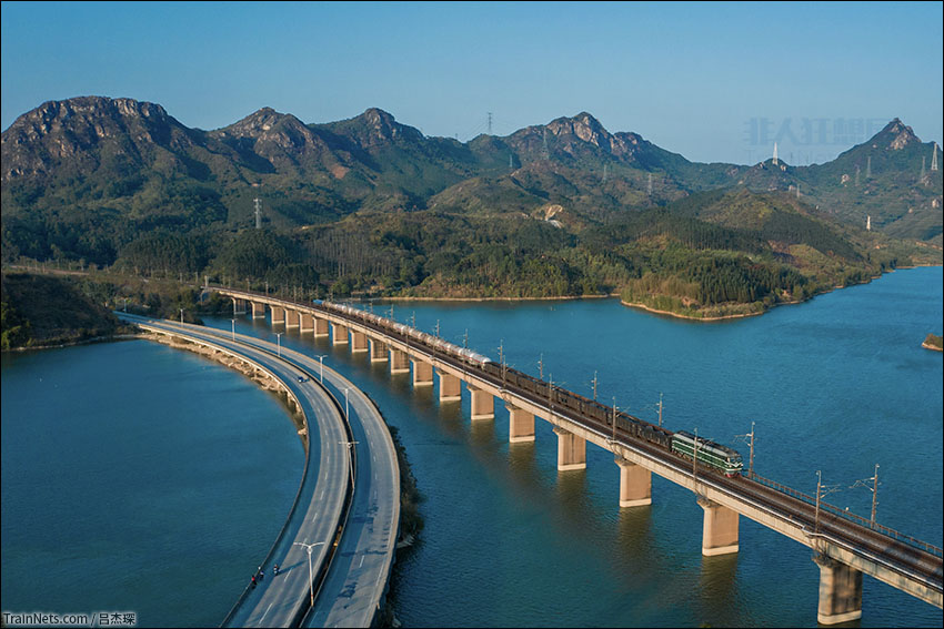 2020年1月。南岭之南,北江之北。东风4货列通过京广铁路飞来峡,行驶在溱水畔。(图/吕杰琛)