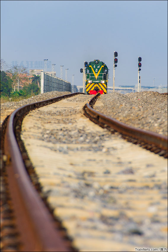 2020年2月20日。2018年7月因茂名站江湛通车,茂名站再也不办理货运业务。而这台茂名货调也因此随着货运移到茂名东站。而这边仍是无网天空,相信它也可以自由自在的工作。(图/陈力)