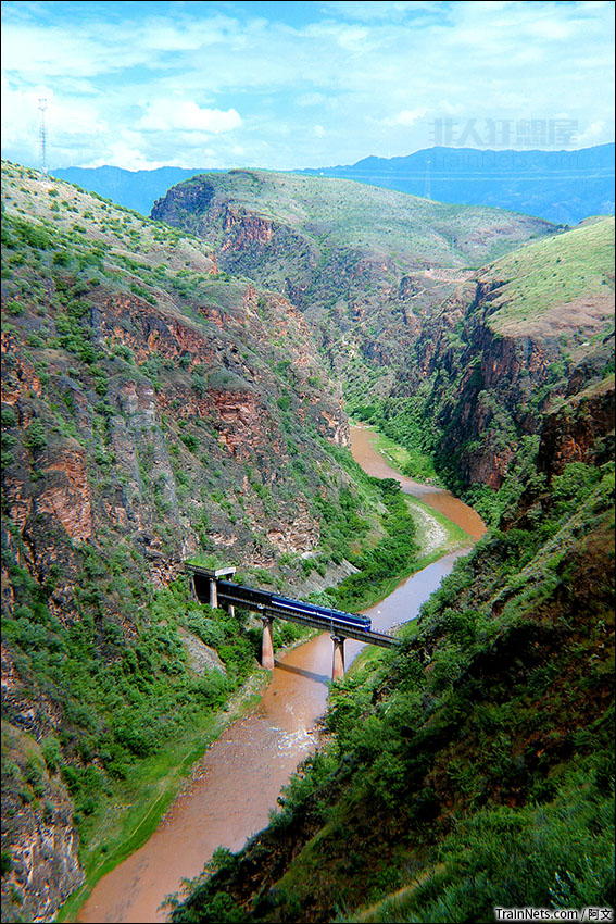 2019年。成昆线。列车通过元谋城南的龙川河第7跨。