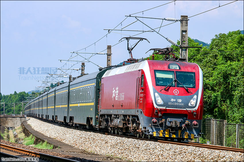 2019年7月。广州花都。HXD1D-0566牵引晚点的Z13次(沈阳北-广州东)正在通过军田站附近。