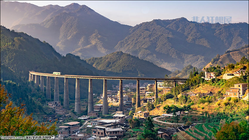 2019年11月。单机DF4B机车缓缓驶过晨辉中的漳泉铁路尾厝大桥。