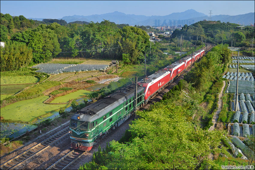 2020年4月。因春运支援福建地区的HXD1D型机车采用专列的形式回送南昌。