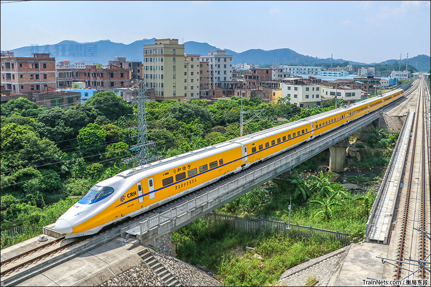 2020年8月。CRH2J执行广清城际铁路联调联试任务,列车飞驰在上行线。