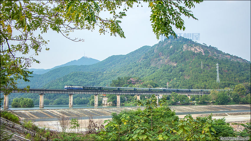 2020年9月,安徽太湖。K8451次(合肥-宿松)行驶在合九线花亭湖铁路桥上。