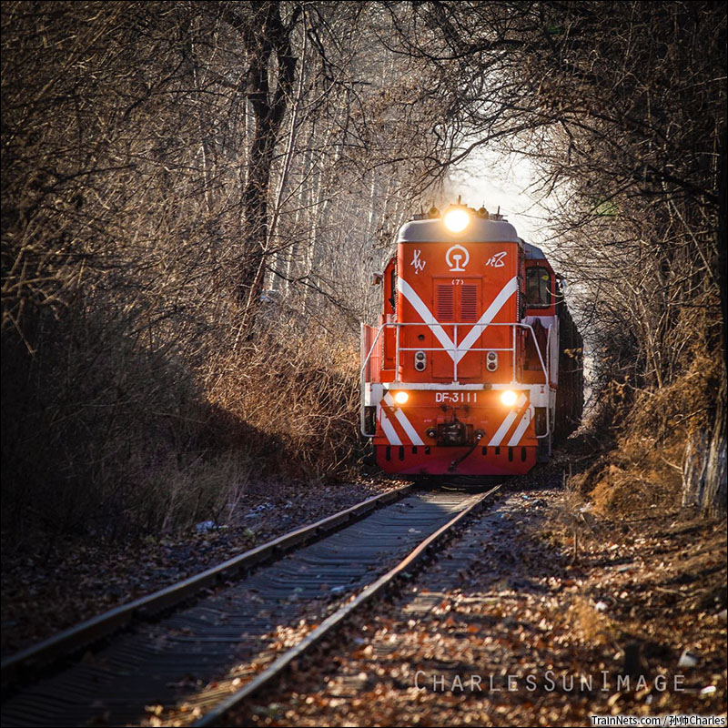 2020年12月25日。良陈线阎村站附近,良乡站调DF7-3111牵引P70货列缓慢的行驶在一年一次走车的南梨园粮库专用线上,接近阎村站。