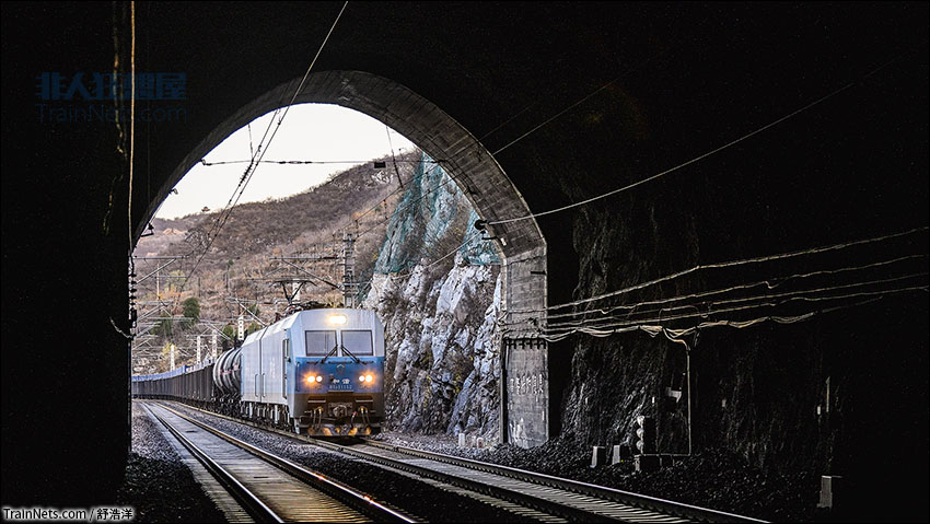 2020年11月7日。代替韶山四在丰沙线运行近一年的“蓝精灵”,牵引23547次列车驶入丰沙铁路四号隧道。