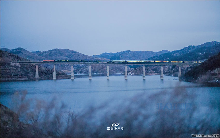 2020年12月。晚点的橘客K904次驶过太焦线双峰水库。
