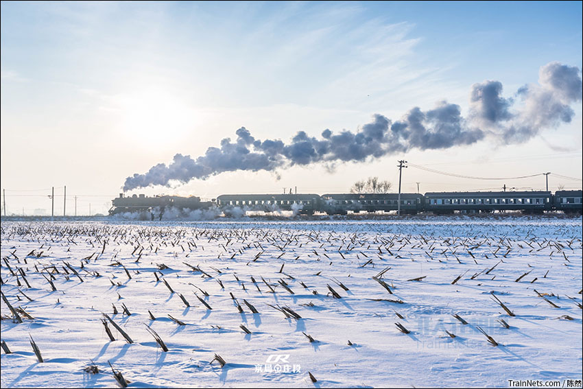 调兵山蒸汽行驶在雪原
