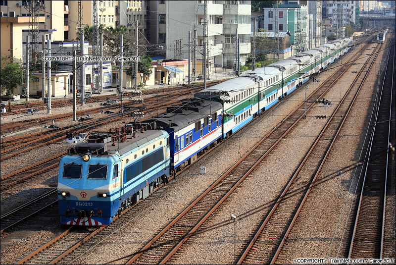 2015年4月5日。广东深圳。广深线在清明期间再次开行城际特快,T8386次,深圳-广州东通过深圳彩虹桥。(IMG-7933-150405)