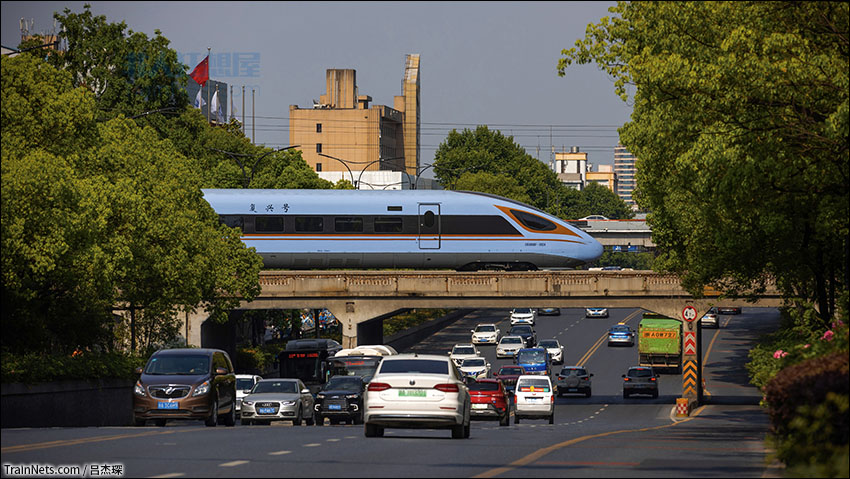 2021年5月10日。CR300BF-3024担当的D5502次(杭州-连云港东)跨过杭州艮山西路。