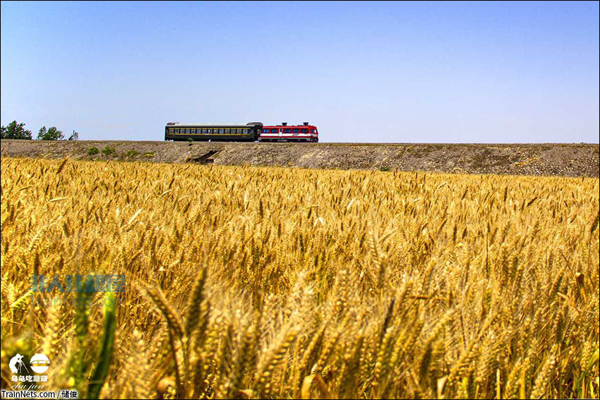 2021年5月30日。淮南市凤台县。夏日的皖北大地一片金黄,麦田里的潘谢铁路通勤小火车驶向铁运处。