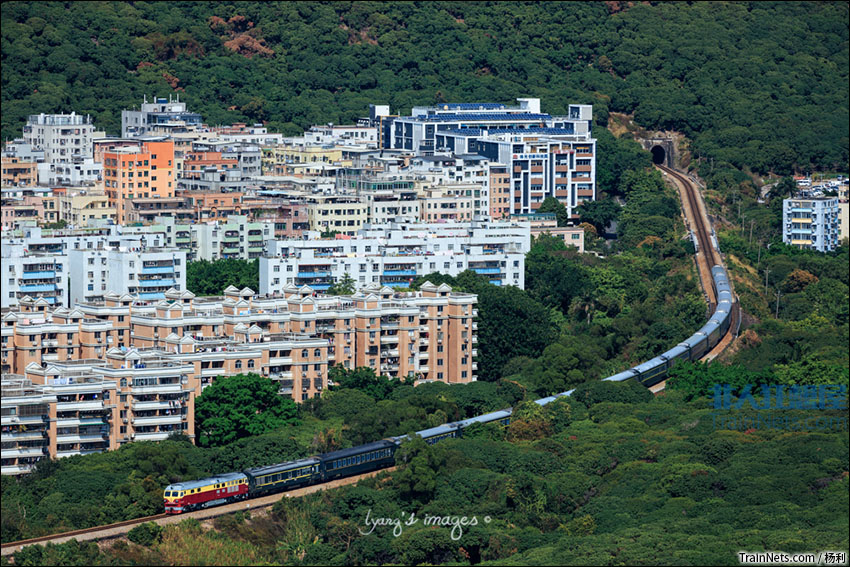 2021年2月17日。合深快速K255次(合肥-深圳西)列车驶经龙辉花园附近,即将接近平南铁路西丽火车站。东风4D型机车牵引25T型车底十分的漂亮。春运期间,合深快速K255/6次列车采用25T型车底,这是平南铁路开线以来车底规格最高的图定正班车。