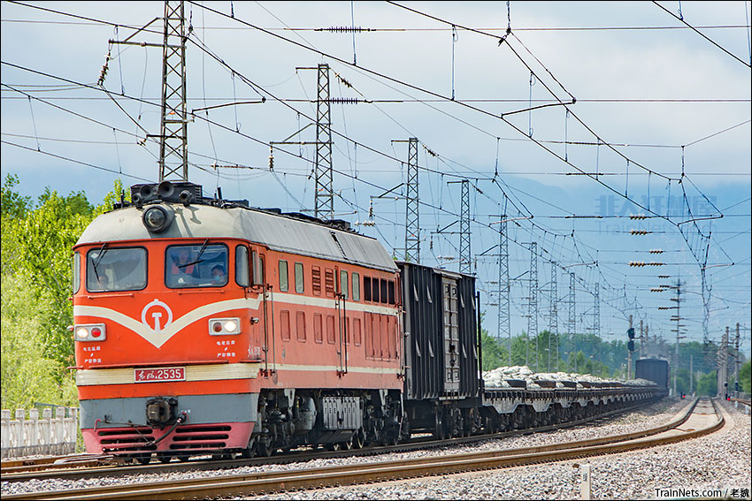 2021年4月30日。大秦线4月集中修完毕后开行57142次路用列车将施工物料回送大同站,列车本务为临时借调的太局侯段装配ND5汽笛的DF4B-2535,尾部湖东DF4B-2597推挽。
