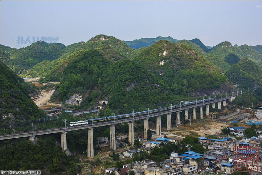 2021年5月。沪昆线。成局贵段SS3牵引5645次(贵阳-昭通)列车行驶在六盘水市区的喀斯特山间,接近马嘎站。