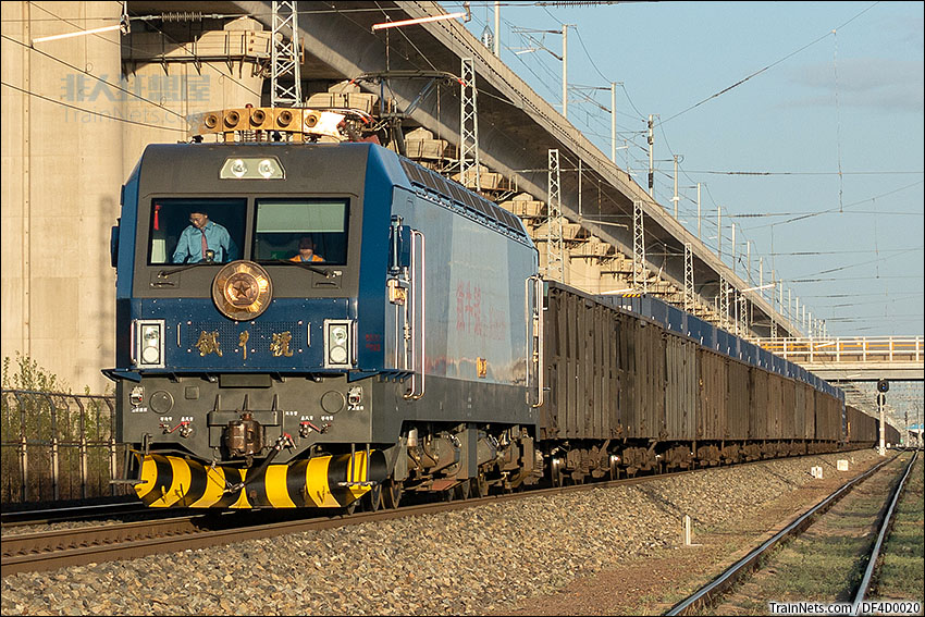 2021年5月12日。傍晚。滨洲线。“铁牛号”牵引哈南-三间房直货通过大庆站。