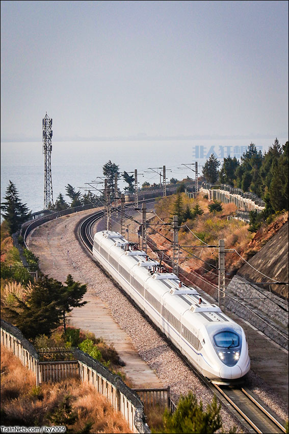 2021月4月。大丽线。西南崇山间的动车组也能邂逅“大海”,丽江驶来的CRH2G“先进黑脸”动车组列车行驶在洱海边。