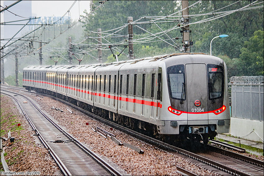 2021年7月。莲花路站。暴雨中的上海地铁1号线新动力,南车株机制造“钢铁侠”列车。