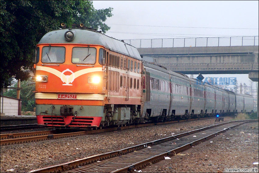 2006年11月12日。橘子2527牵引肇九直通车(T363次)通过街边站。