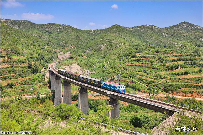 2021年7月3日,SS8-0124牵引客车6423次行驶在太行山中,接近下湾站。