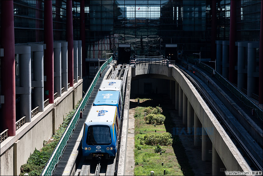 2021年6月。首都机场APM列车驶出T3C区域车站下坡穿越航厦。