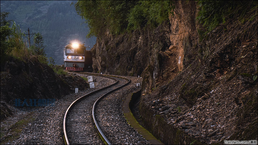 2020年7月4日。傍晚时分,米轨列车通过曲曲折折的钢轨,即将驶上我身后不远处的人字桥。