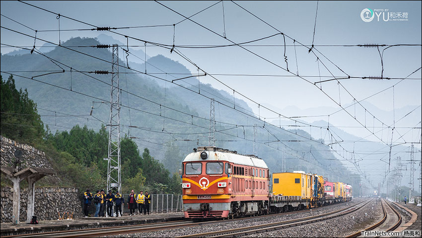 2021年10月,大秦铁路,两台DF4B推挽运输施工机械通过下庄站。