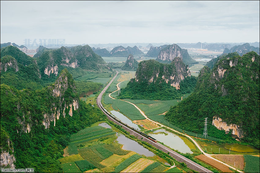 2021年7月2日。湘桂线。边域普客5511(南宁-凭祥)驶出渠黎,遁入左江流域细密的喀斯特峰林。