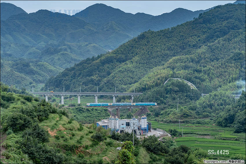 2021年8月20日,鹰厦铁路下行线,三台韶山4重联从永安发往城口或者漳平,通过打虎坑展线接近打虎坑站。