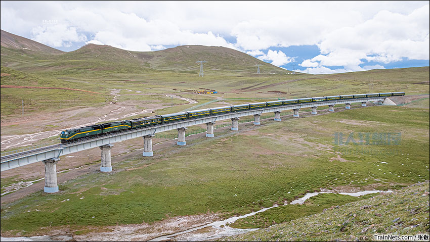 2021年8月5日。NJ2牵引Z266次(拉萨-广州)行驶在青藏线那曲段。
