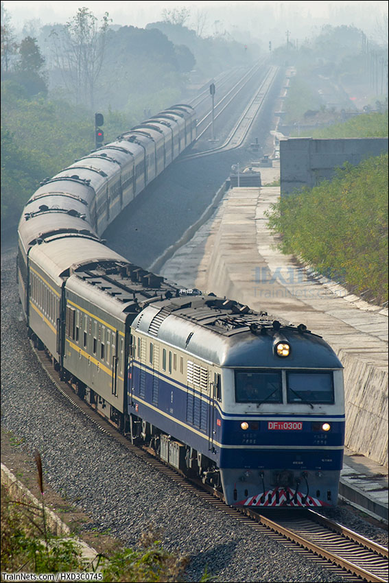 2021年10月。安徽合肥。上局合段DF11 0300牵引已经停运的合九老车K1030次(东莞东-合肥)通过合九铁路丰乐站。安九高铁开通后,同样停运的还有另一个合九“元老”K255/6次 (合肥-深圳西)。在几年后京港高铁合肥枢纽完全建成后,合九铁路将会迎来更大的变局。