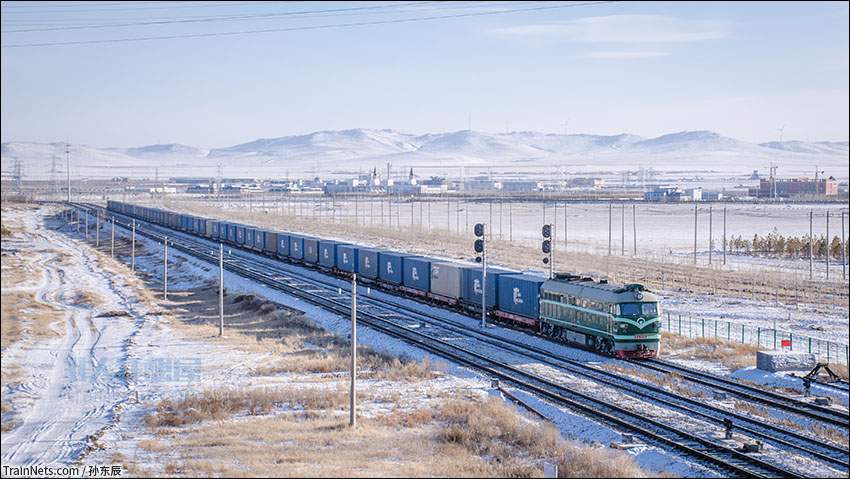 2018年2月10日。DF4牵引货列驶向满洲里口岸。