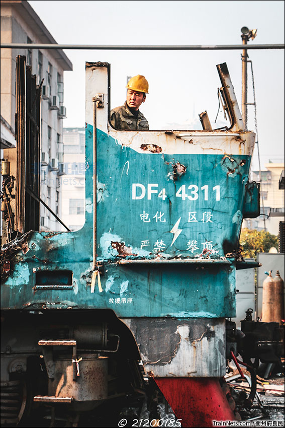 2021年11月,衡阳,正在被切割的广铁株段DF4C-4311。