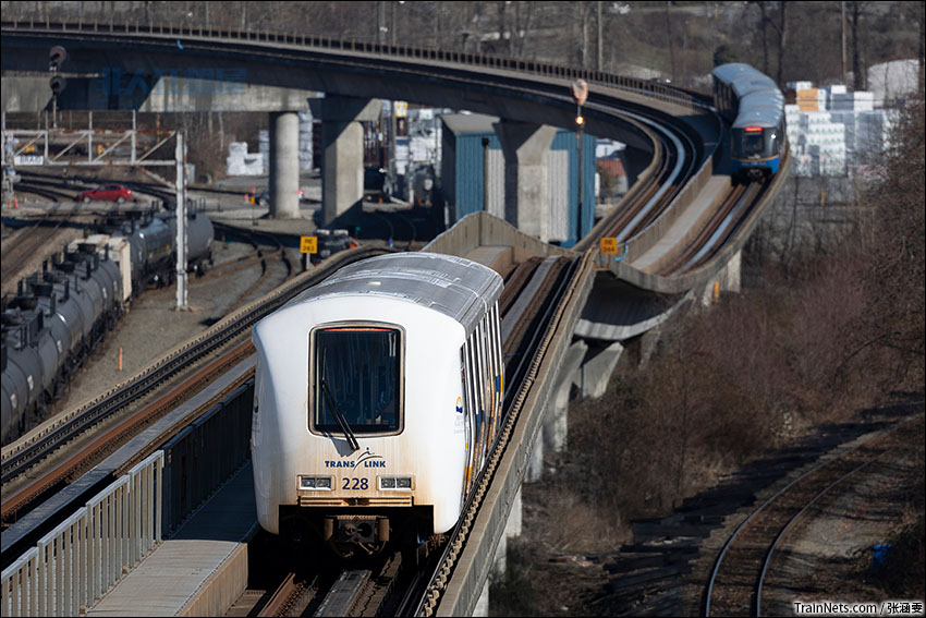 2022年2月,温哥华地铁世博线大学支线Sapperton站,千禧线的调车经由线路向东行驶。