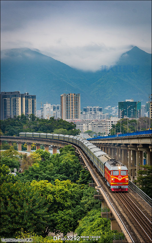 2022年2月12日。广东肇庆。广茂线。K844次列车通过荣获“全国工程鲁班奖”的肇庆西江大桥。