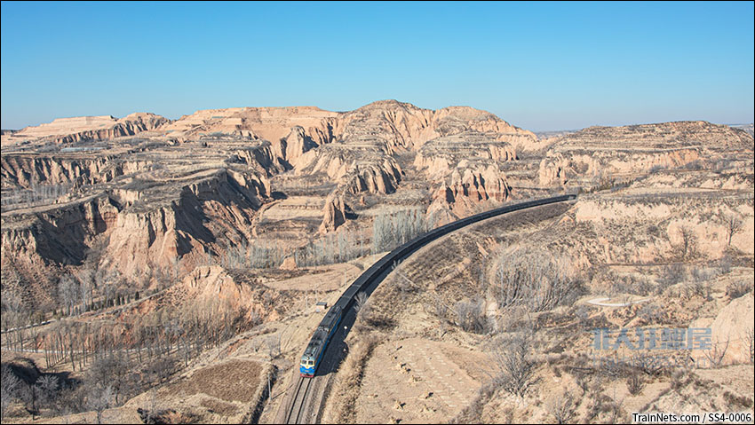 2022年1月。太焦线。双机东风4B改D牵引煤列驶过红崖-北田受展线区间。