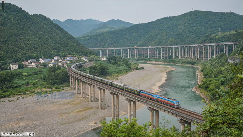 2022年6月。宝成线。双机SS7D牵引K545次(哈尔滨西-成都)通过嘉陵江大桥。