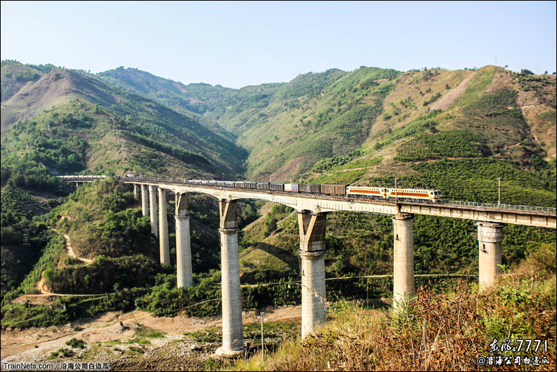 2015年5月2日。南昆线。双机SS7牵引货车通过南盘江大桥。