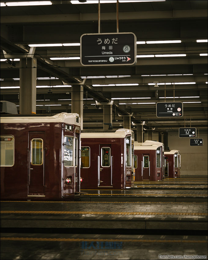 2017年10月4日。日本。大阪府大阪市梅田站。阪急6000、1000、9000、1000系,阪急的梅田站拥有9个站台,是日本私铁中规模最大的车站。
