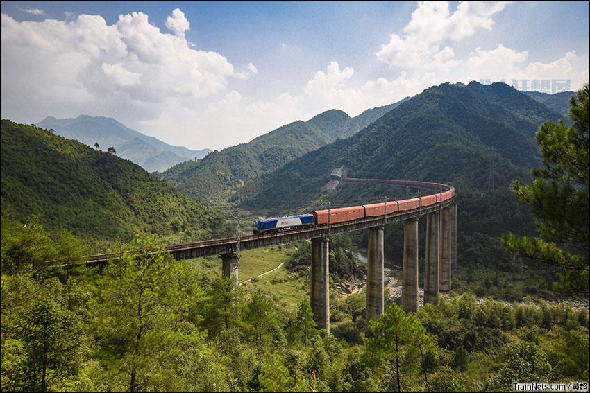 2019年9月11日,由于峰福铁路车盘大桥交通不便,就在末班过路班车到达前的最后时刻,远处传来鸣笛声,新时期原色JSQ大列出现在眼前。