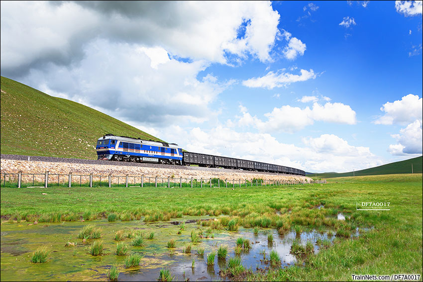 2022年7月。赤大白铁路。柴达敖包山大弯道。DF8B牵引货列下行前往白音华。