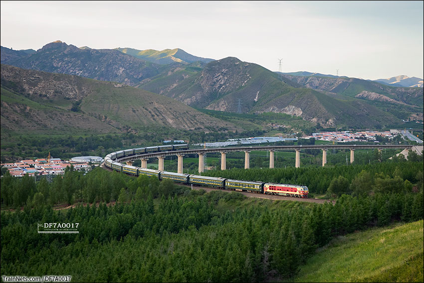 2022年7月。傍晚,集通铁路司明义展线。客车K1519次通过司明义大桥。