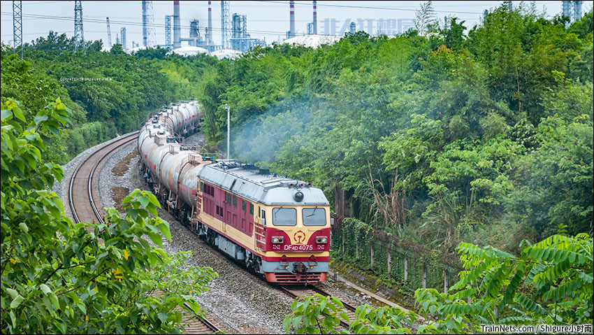2022年6月8日,四川彭州石化DF4DF-4075推送油龙进入厂区。