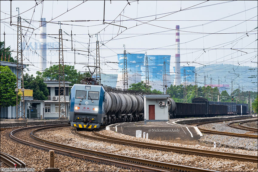 2022年5月2日。疫情之下的京广线货运成为了主流,下行货物列车正快速通过大坑口站。