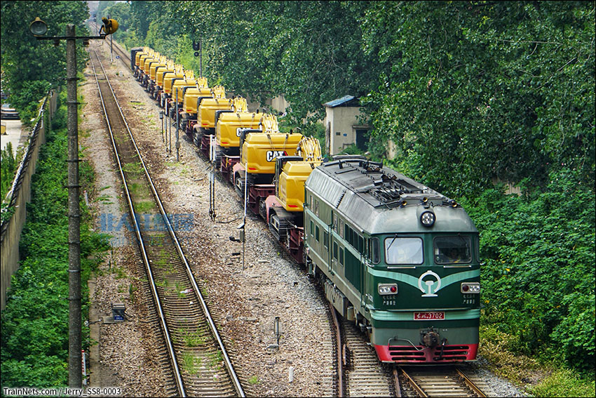 2022年7月15日,上海入伏。暴风雨前夕,DF4B牵引超限专列穿过一片繁盛的绿色,沿南何线下杨浦站。