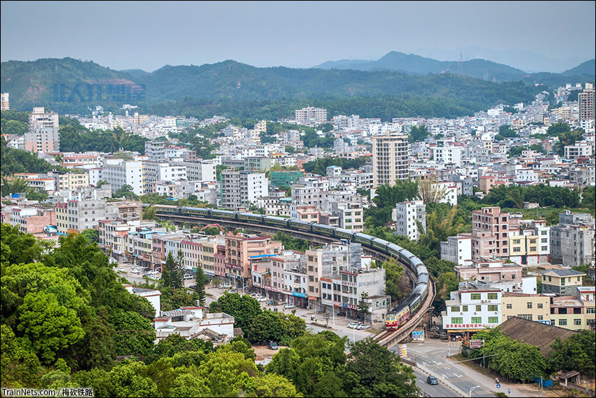 2020年7月。K685次(汕头-重庆北)穿过梅州华城。