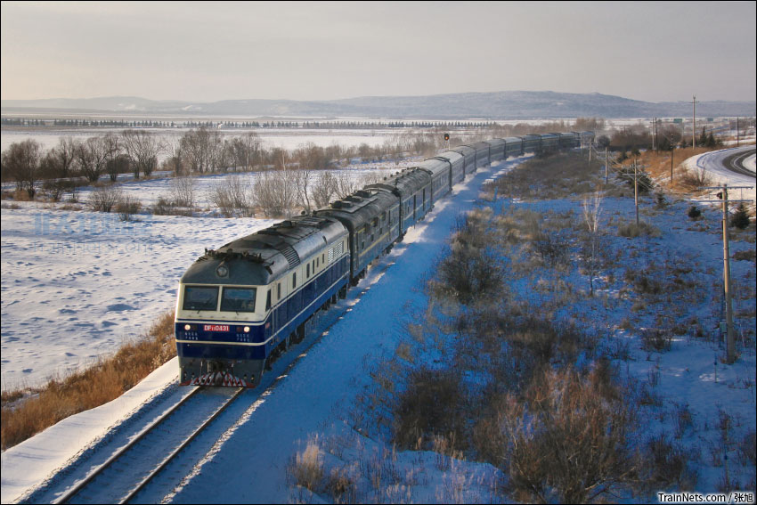 2022年1月23日,牙林线,K7096次(哈尔滨-海拉尔)刚从岩山站开车,继续向牙克石方向开去。今年大兴安岭的雪似乎不是很大,达速运行也没能卷起千层雪。